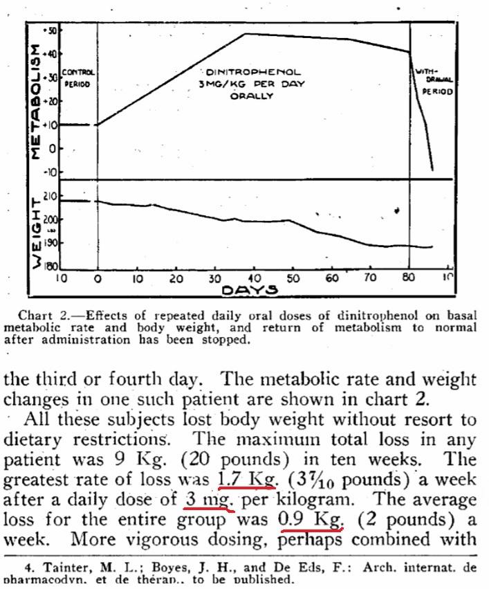 1. Aumento da taxa metabólica basal (TMB): O DNP aumenta a taxa metabólica, levando a um aumento no gasto energético diário. Isso pode contribuir para uma maior taxa de queima de calorias, resultando potencialmente em perda de peso.
